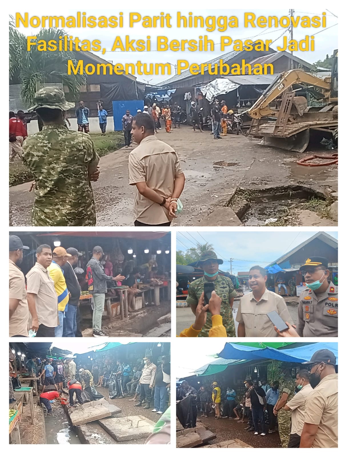 Didampingi Forkopimda dan pimpinan OPD, Bupati Anisto menyaksikan normalisasi drainase menggunakan ekskavator untuk mengatasi sumbatan parit di kompleks pasar. (ft:MA/Inspirasi Papua)
