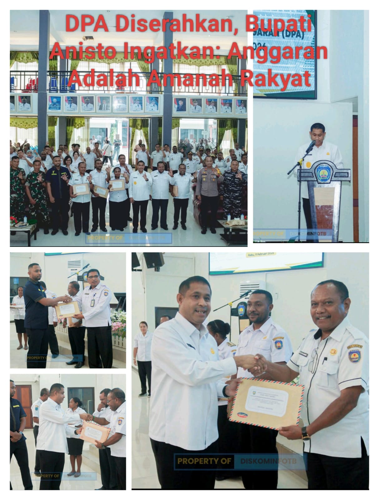 BINTUNI, PAPUA BARAT – Pemerintah Kabupaten Teluk Bintuni resmi memulai pelaksanaan APBD Tahun Anggaran 2026 yang ditandai dengan penyerahan Dokumen Pelaksanaan Anggaran (DPA) oleh Bupati Yohanis “Anisto” Manibuy di Gedung Sasana Karya, Kantor Bupati Teluk Bintuni, SP-3 Bumi Saniari, Rabu (11/2/2026) sore.