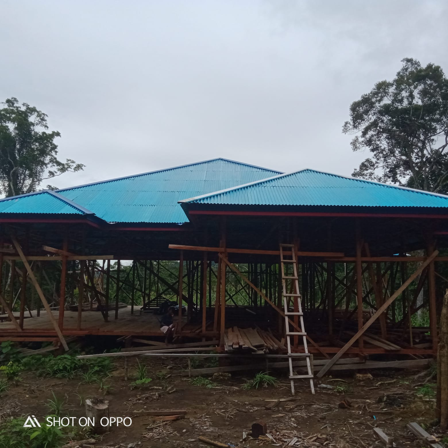Maryus menambahkan sampai saat ini progress Pembangunan kantor distrik Moskona Utara Jauh baru tutup atap sedangkan yang belum ada yaitu dinding dan lantai kantor yang menggunakan papan.