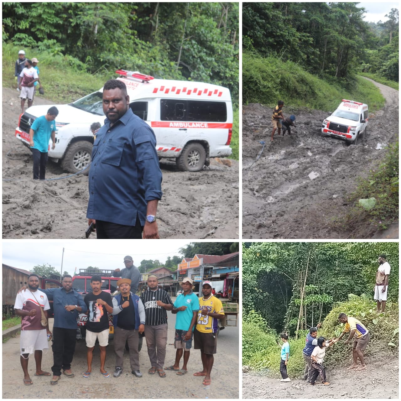 Dimana mobil ambulance tersebut tidak bisa melewati salah satu ruas jalan di gunung papan disebabkan jalan rusak dan berlumpur.