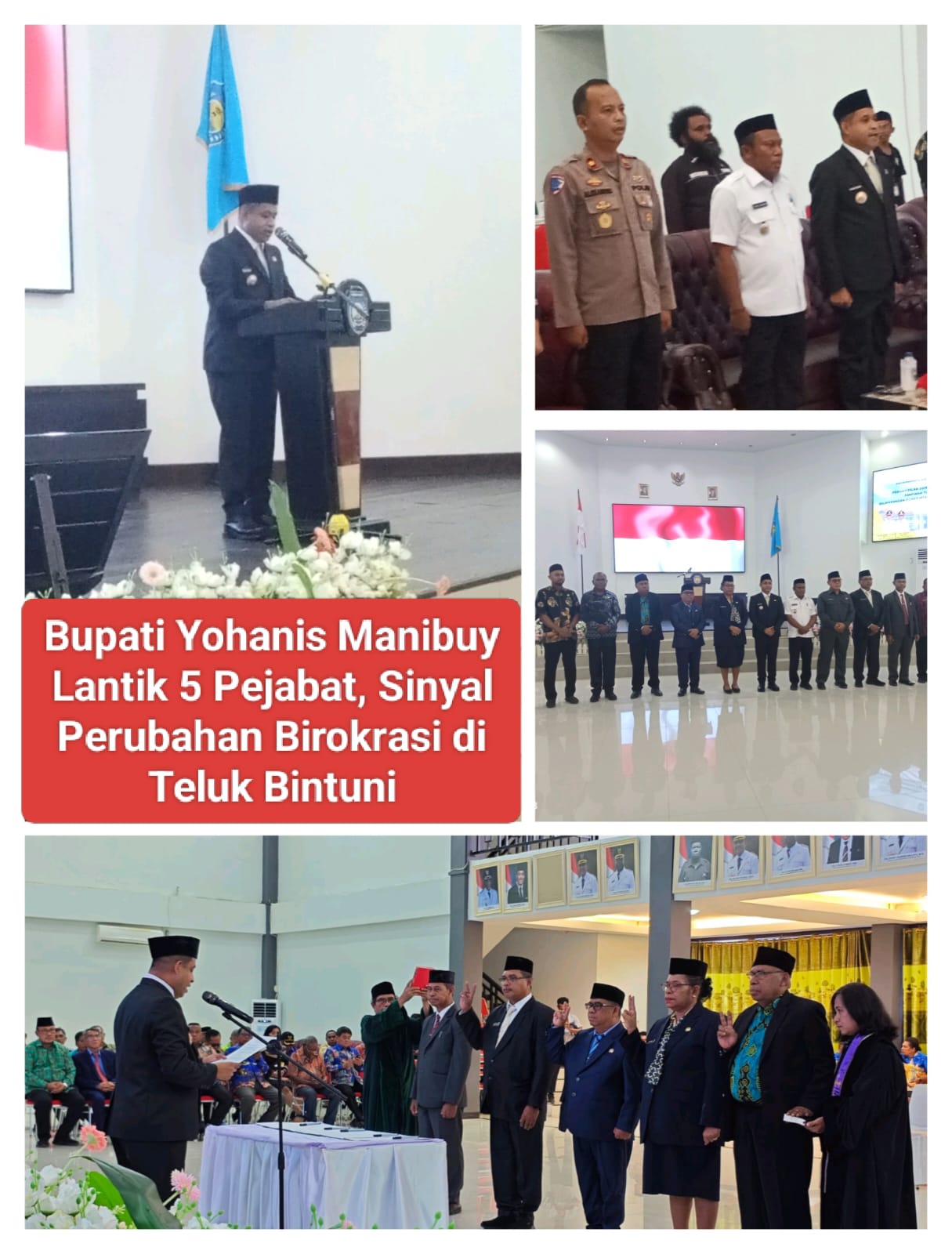 Bupati Yohanis Manibuy Lantik 5 Pejabat, Sinyal Perubahan Birokrasi di Teluk Bintuni