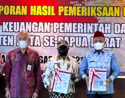 yang diserahkan langsung oleh Kepala Perwakilan BPK-RI Provinsi Papua Barat Muhammad Abidin, SE, Ak, CA, CSFA bertempat di ruang Auditorium Kantor  BPK Perwakilan Provinsi Papua Barat Sowi Manokwari.
