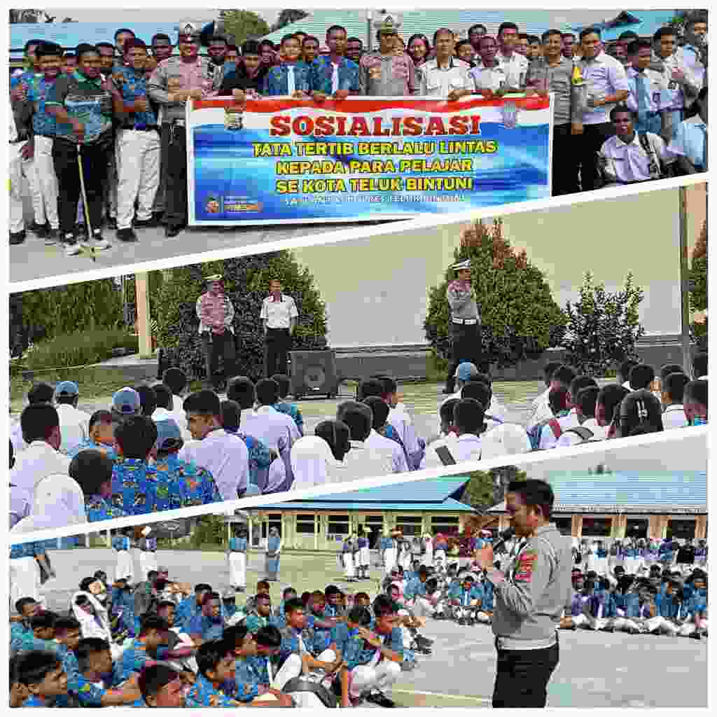 BINTUNI, InspirasiPapua.id- Guna menciptakan keamanan, keselamatan, ketertiban  dan kelancaran lalu lintas (Kamseltibcar Lantas) yang tertib, Satlantas Polres Teluk Bintuni laksanakan sosialisasi kepada pelajar atau siswa-siswi SMA Negeri 1 Bintuni (SAMANSA Bintuni) untuk dijadikan agen perubahan, Rabu (11/10/2023) pagi.